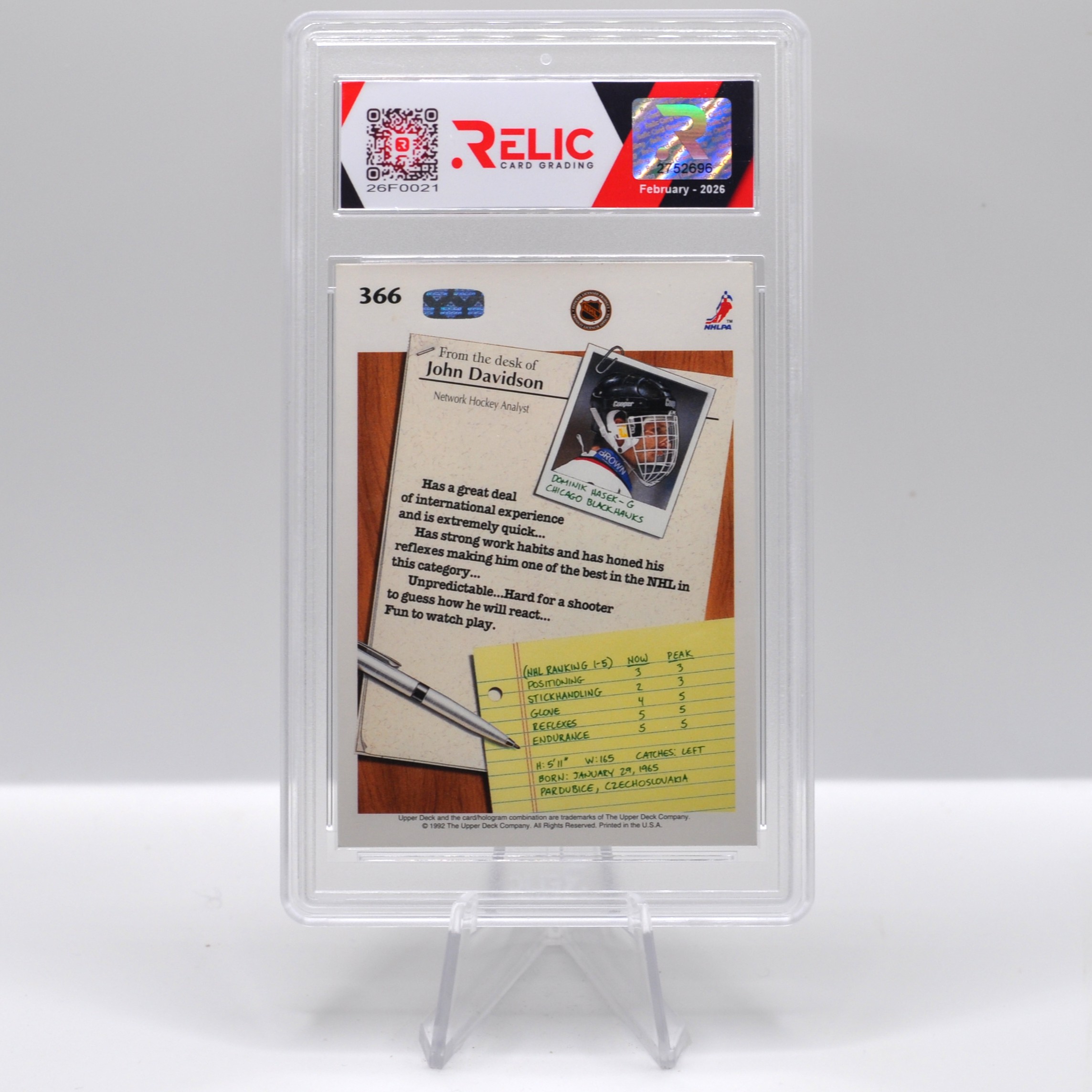 Dominik Hasek – 1992 Upper Deck – 26F0021